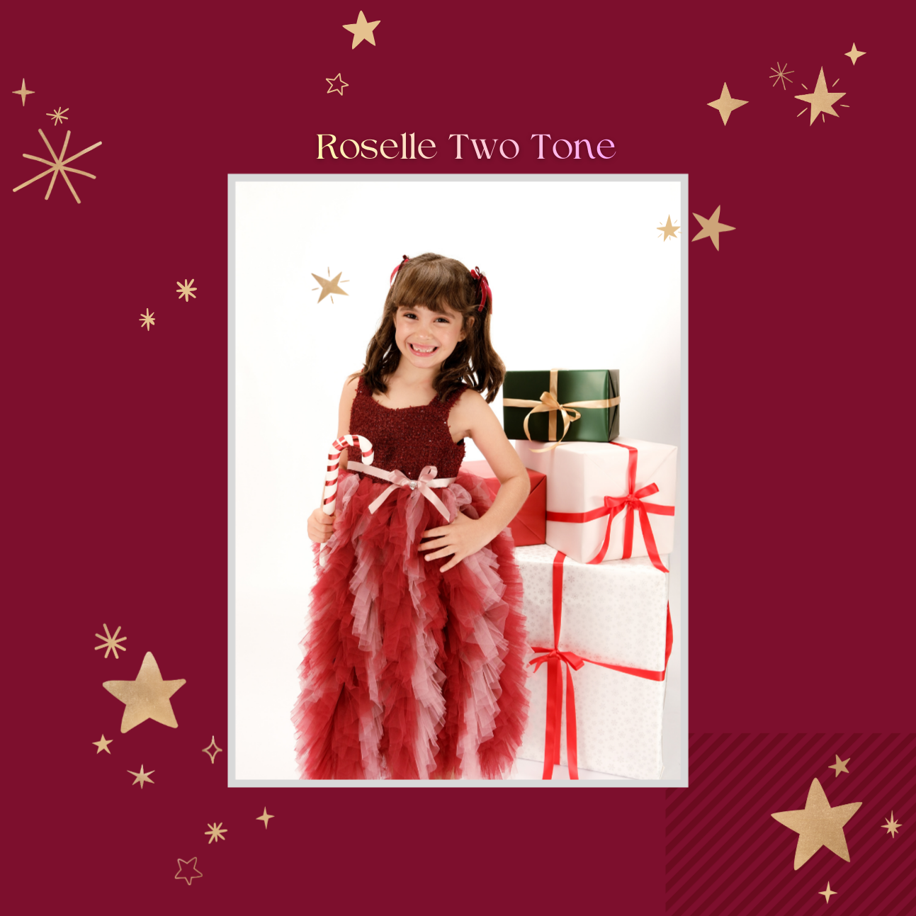 Two-tone pink and maroon tulle in a light, softly puffed silhouette — effortless charm for every celebration.