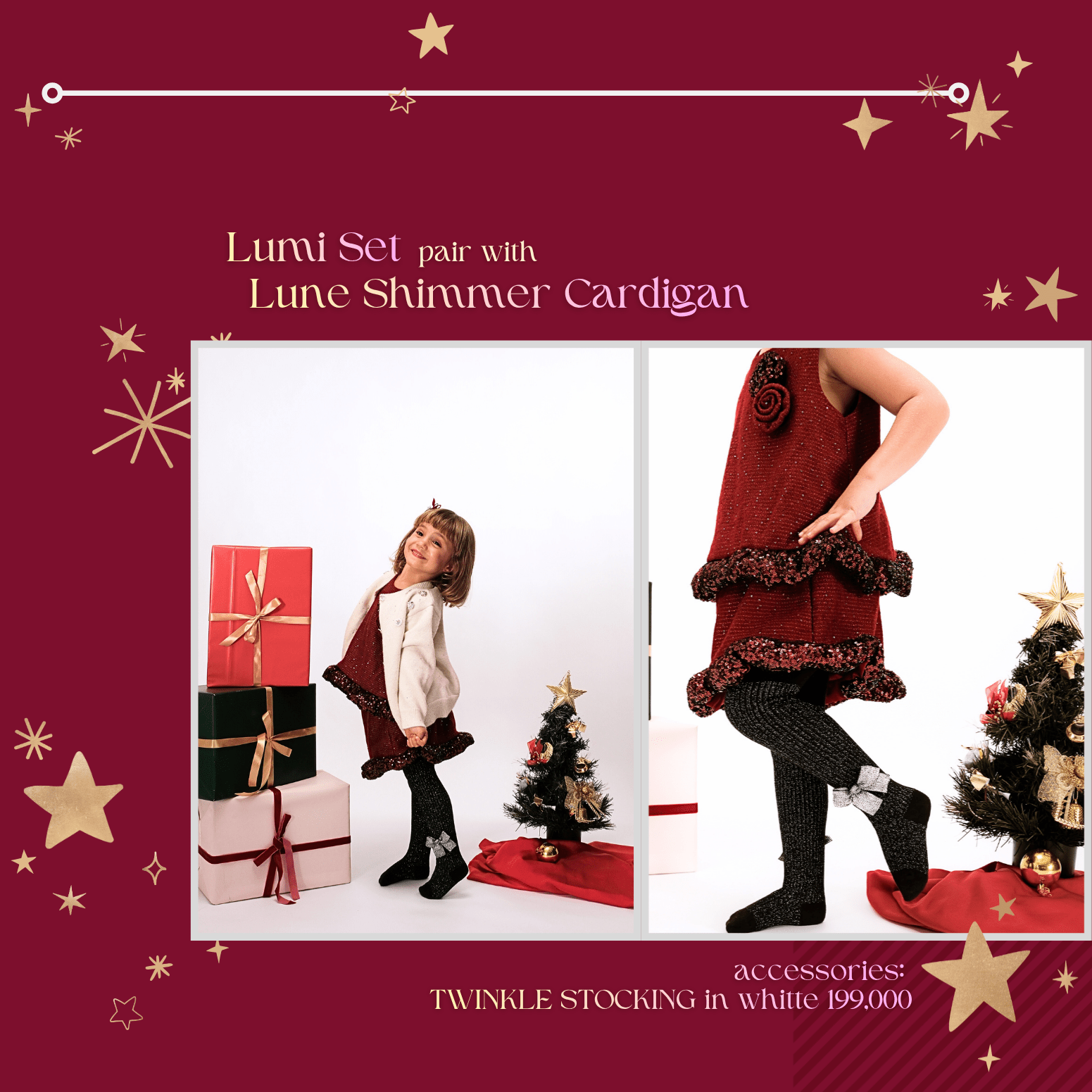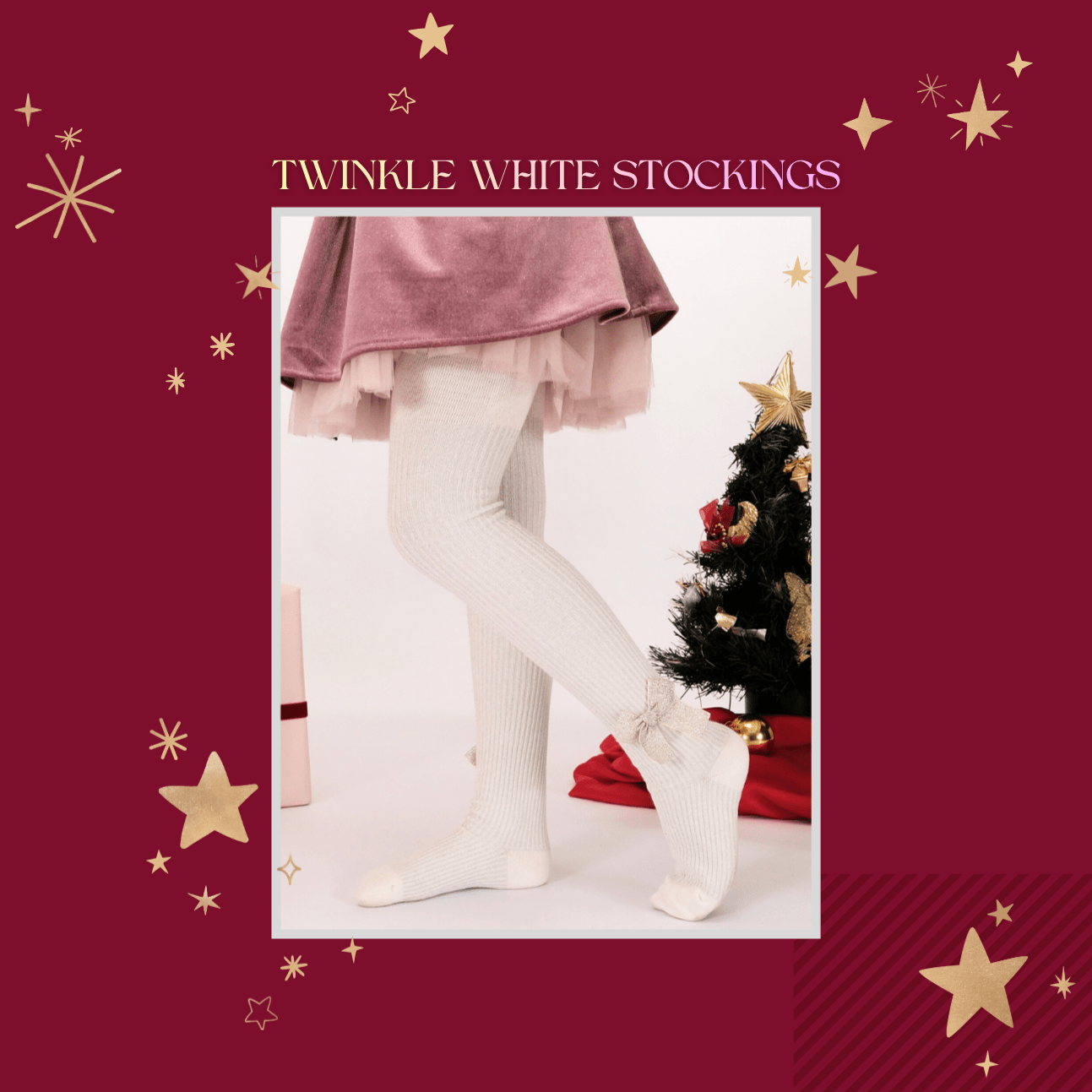 The Twinkle Stocking comes in classic black and white, designed for babies (6 months) up to 12 years. Soft, cozy, and festive — the perfect finishing touch for holiday outfits.